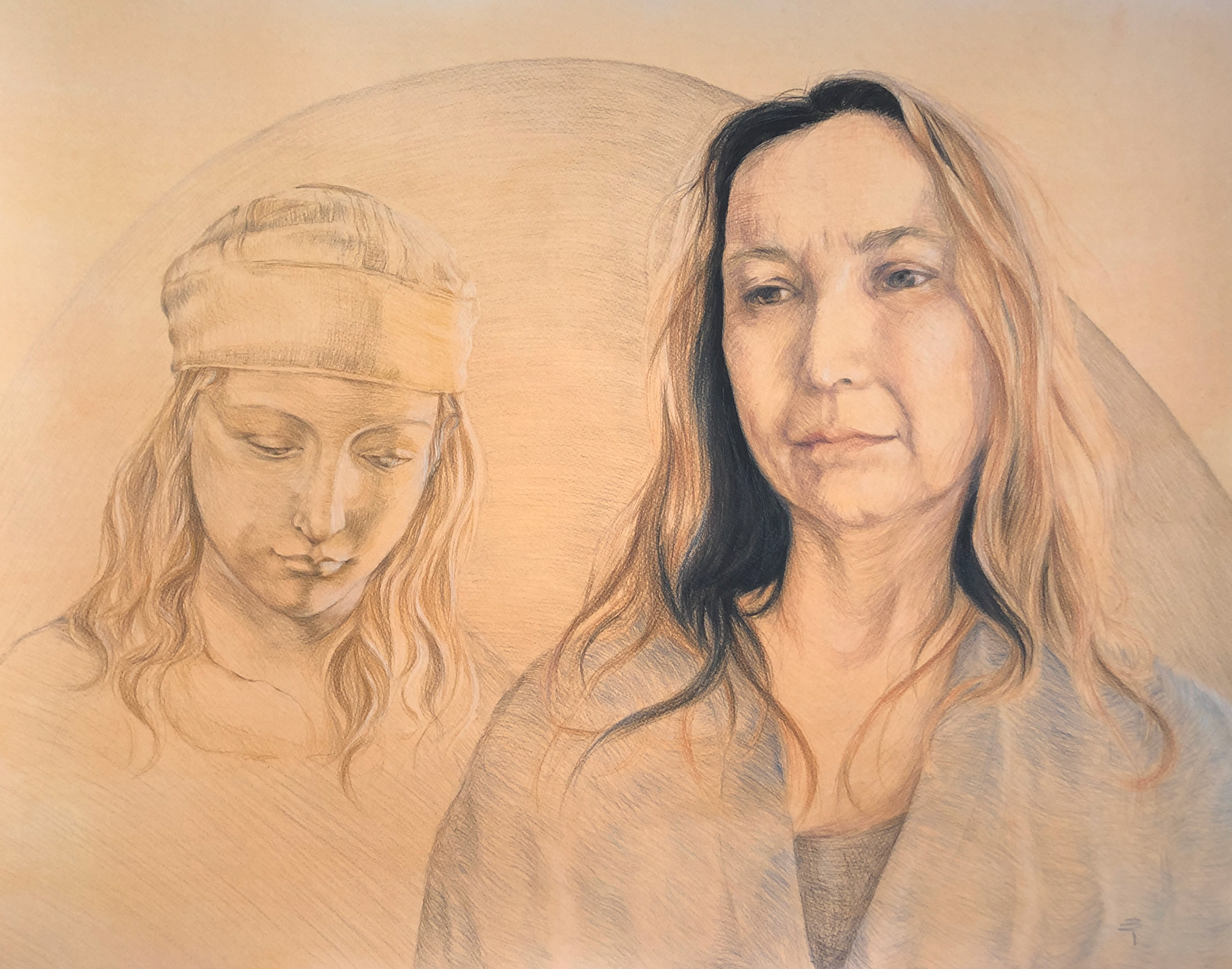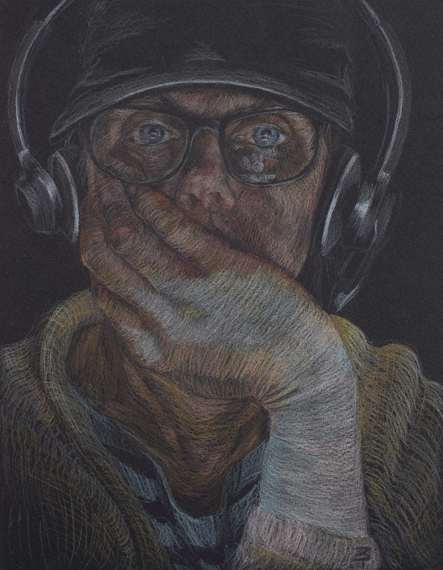 On Zoom, Self-portrait, 11"x8.5", 2021, Watercolor pencils